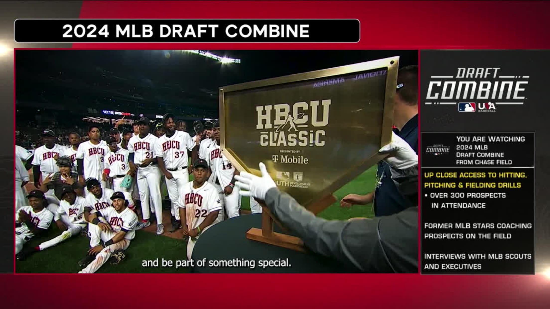 The HBCU Swingman Classic presented by T-Mobile & powered by the MLB-MLBPA Youth Development Foundation (YDF) is an annual All-Star experience for baseball student-athletes from Division-I programs at Historically Black Colleges & Universities (HBCU). This year's philanthropic & educational event, which centers around an HBCU "All-Star Game,” was held during 2024 MLB All-Star Week on Friday, July 12, at Globe Life Field, home of the World Champion Texas Rangers.